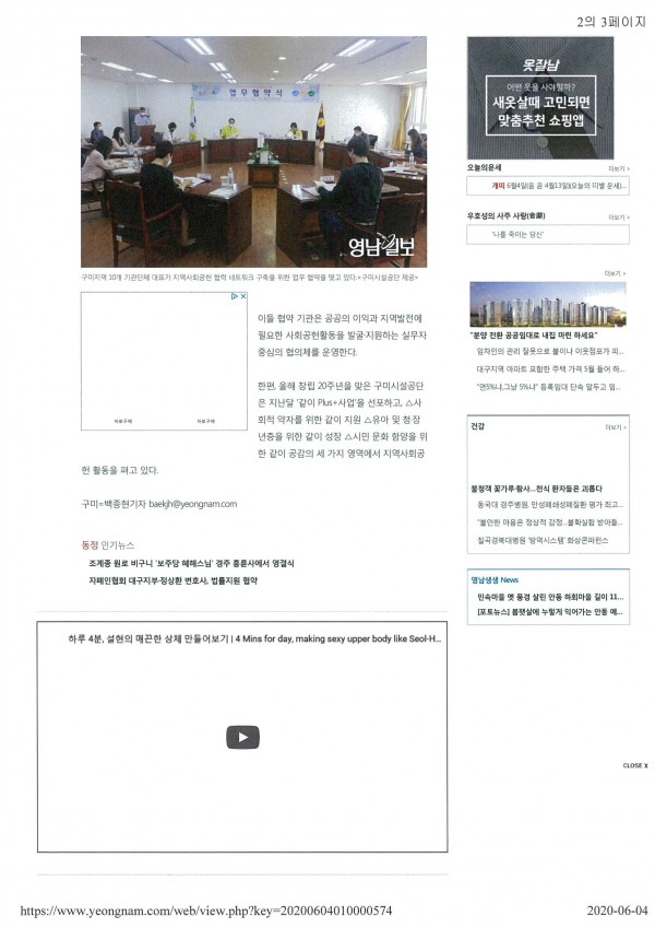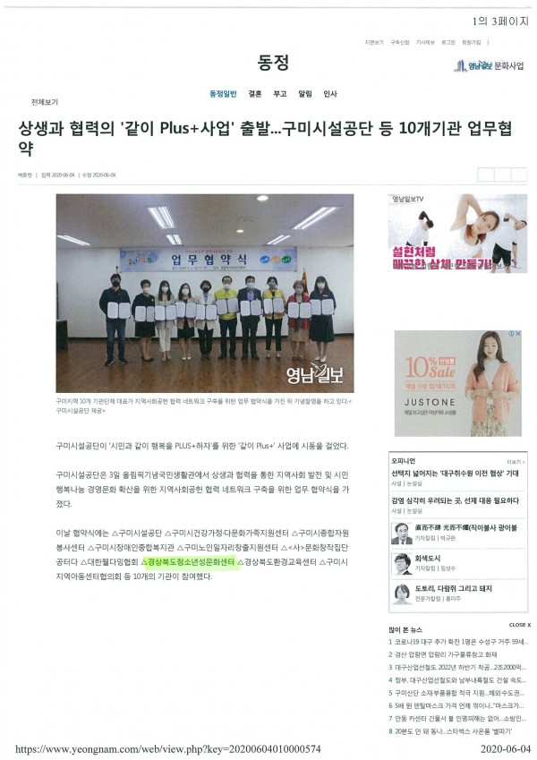20.06.3 상생과 협력의 "같이 Plus+" 사업 출발...구미시설공단 등 10개 기관 업무협약-지역사회공헌 협력네트워크 구축 업무협약 - 영남일보@CboundaryN@h*@CboundaryN@