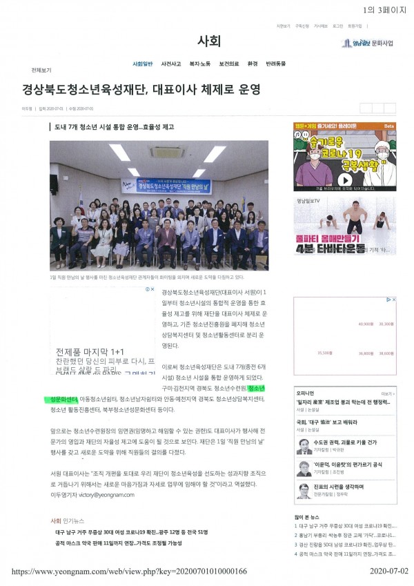 20.7.1 경상북도청소년육성재단, 대표이사 체제로 운영-영남일보