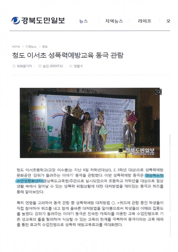 20.7.12 청도 이서초 성폭력예방교육 동극 관람@CboundaryN@h*@CboundaryN@