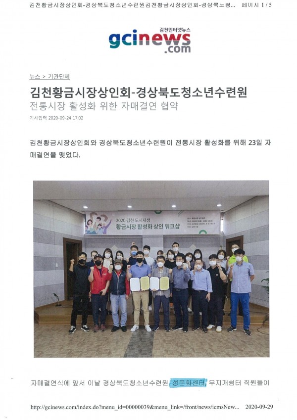 20.09.23 경상북도청소년수련원, 성문화센터 추석맞이 전통시장 장보기 행사