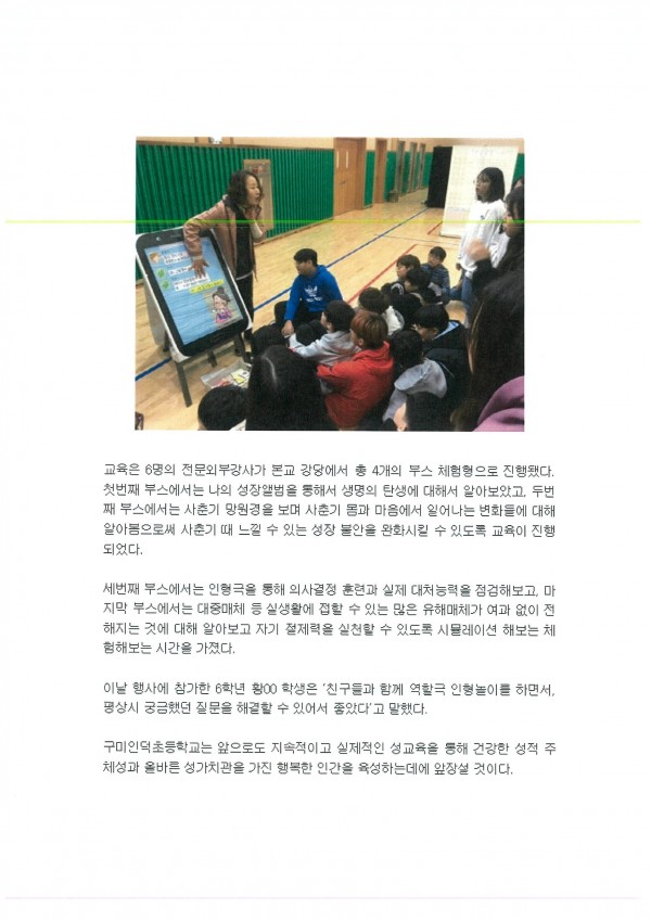 11.16.구미인덕초, 우리학교 찾아오는 성교육!-구미뉴스
