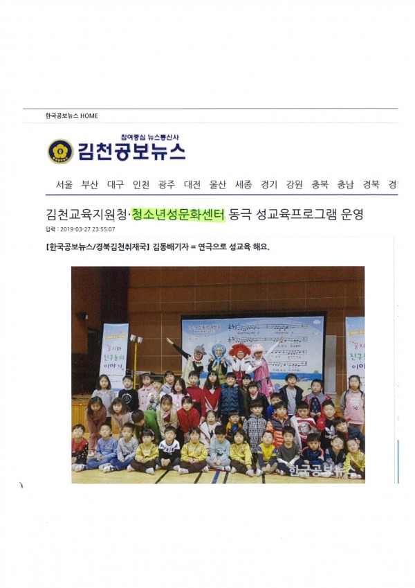 3.27 김천교육청 동극 성교육 홍보-경북공보뉴스 작성자:관리자 등록일:20-02-04 13:52 댓글:0건 조회수:11,320회 본문 .@CboundaryN@h*@CboundaryN@ 목록 이전글 4.26오태초 성폭력예방 연극실시-경북타임즈 20.02.04 다음글 03.15 비타민지역아동센터 체험관성교육-지역센터 홈페이지 홍보 20.02.04 댓글목록 댓글목록 등록된 댓글이 없습니다.