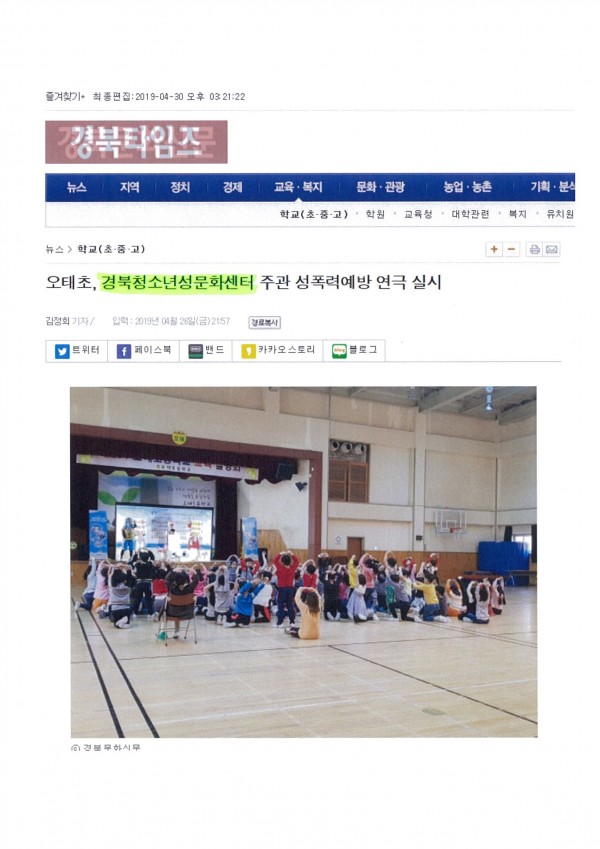 - 이전글 5.8 김천초등학교 2019년도 성폭력예방동극 성교육 실시-김천교육청홈페이지 홍보 20.02.04