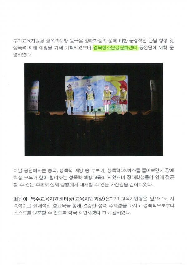 7.4 구미교육지원청 관내 장애학생 대상 성폭력 예방 동극-구미뉴스