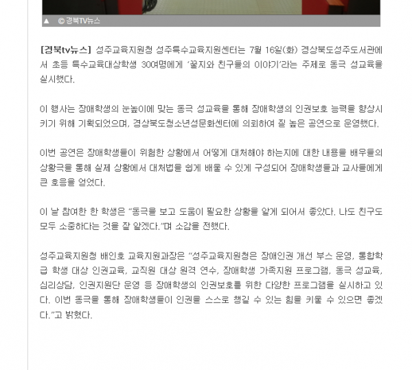 - 다음글 7. 16성주교육청2019초등특수교육대상학생인권보호를 위한 동극 성교육-국제i저널 20.02.04