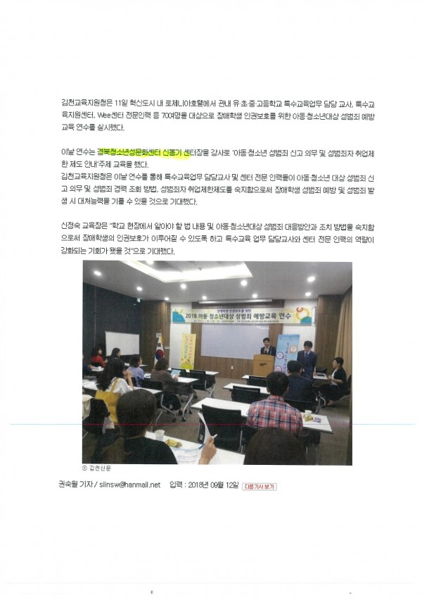9.12. 김천교육지원청, 아동청소년 성범죄예방교육 연수-김천신문
