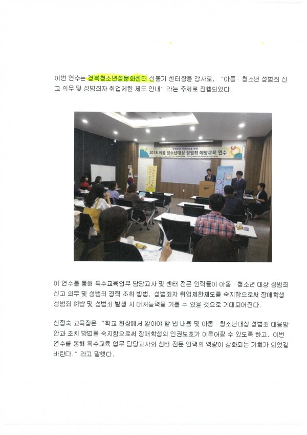- 다음글 9.12. 김천교육지원청, 아동청소년 성범죄예방교육 연수-김천신문 18.12.26