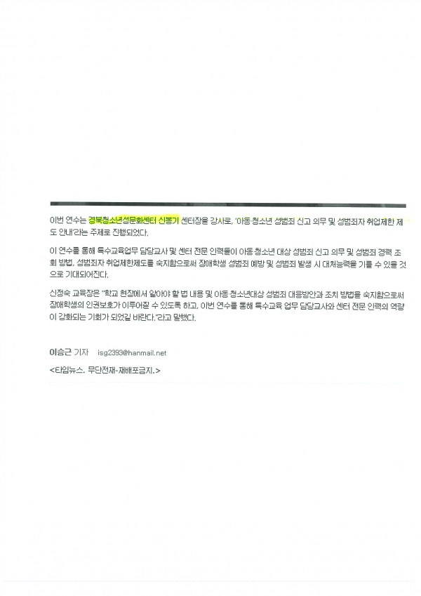 9.13. 2018 아동.청소년 대상 성범죄 예방교육 연수 실시-김천타임뉴스