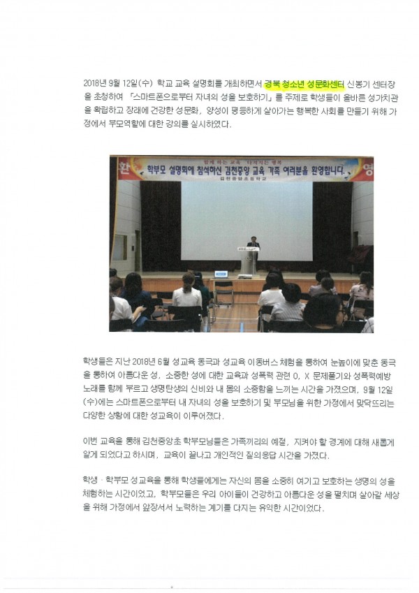 - 다음글 9.13.김천교육지원청,아동청소년 대상 성범죄 예방교육 연수-신아일보 18.12.26