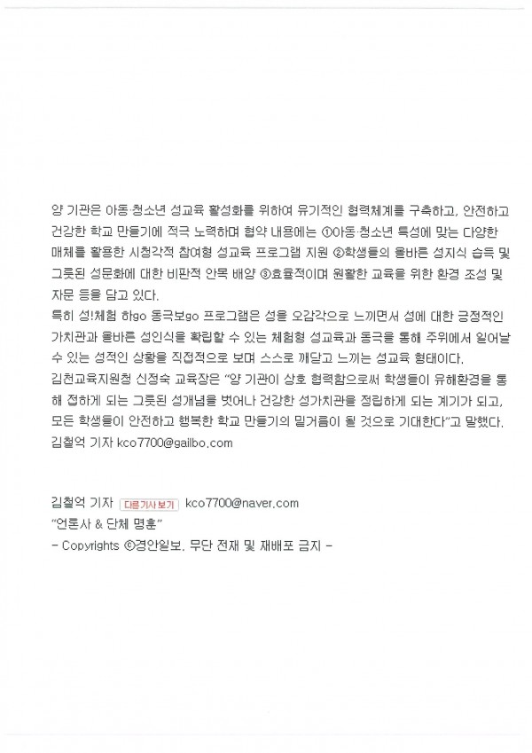 - 다음글 2.28. 김천교육지원청.경상북도청소년성문화센터 성교육활성화 업무협약체결-NSP통신 18.05.09