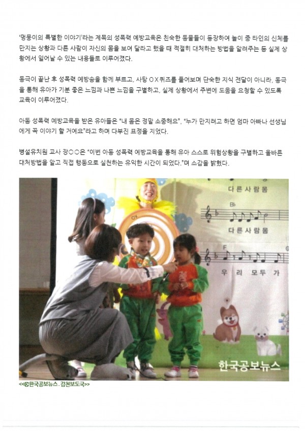 4.26. 김천운곡초병설유치원, 멍뭉이의 특별한 이야기-김천공보뉴스