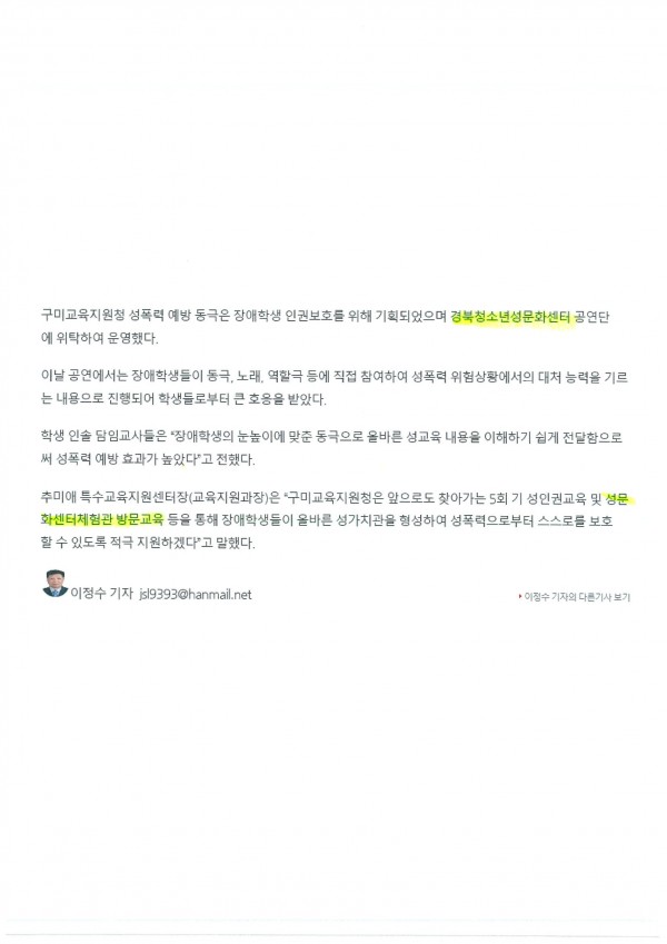- 다음글 6.21. 구미교육지원청,초등장애학생성폭력예방동극개최-경북TV뉴스 18.07.13