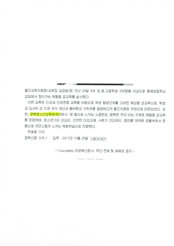 10.25.울진교육청, 평해초서 찾아가는 체험형 성교육-경북신문
