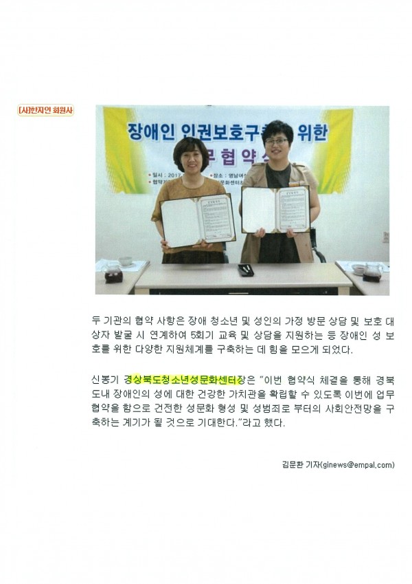 - 다음글 07.26 경상북도청소년성문화센터와 영남여성장애인성폭력상담소 MOU체결1-경북인터넷뉴스 17.08.08