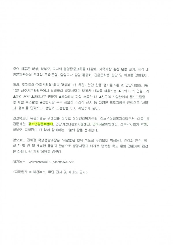 - 다음글 09.04, 경북교육청, 생명사랑 캠페인 친구야사랑한데이 실시-에듀동아 17.12.04