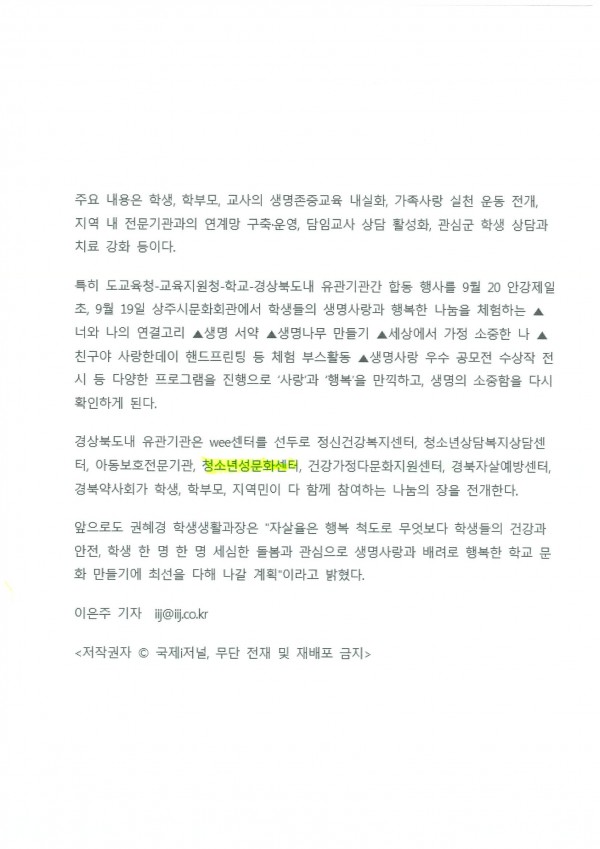 09.04. 경북교육지원청, 친구야 사랑한데이 운영-국제i저널
