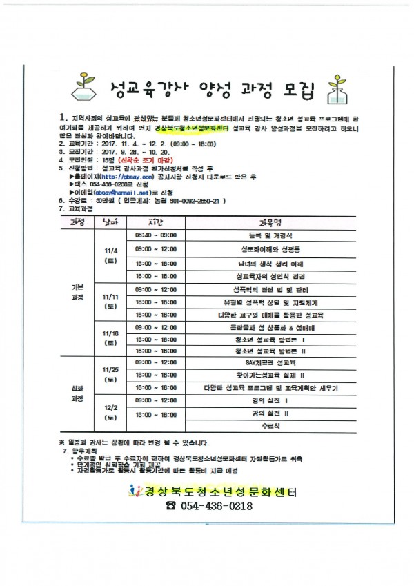 10.12 성교육양성과정 모집-구미시청홈페이지
