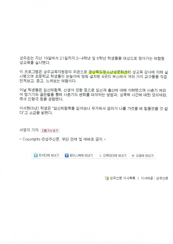 6.29.성주초, 온몸으로 체험하는 성교육-성주신문