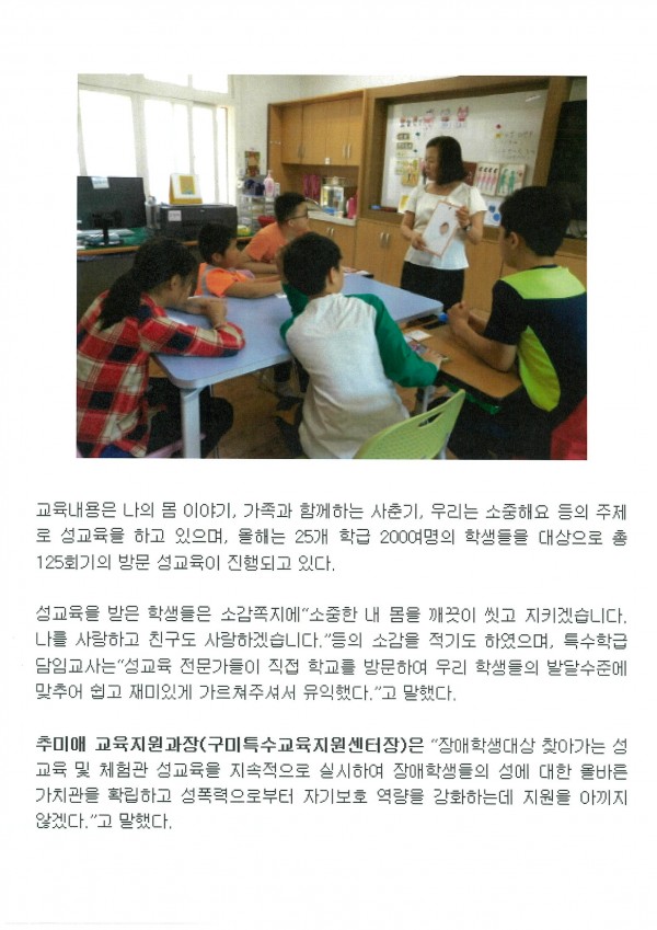 07.02 구미교육지원청 장애학생인권보호를 위한 찾아가는 방문 성교육-구미뉴스