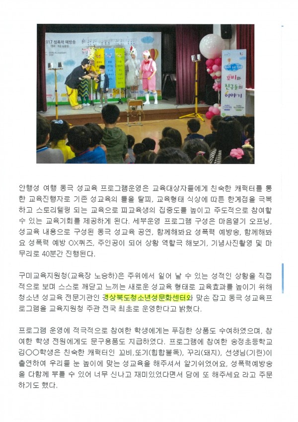 - 다음글 04.18 2017 찾아가는 체험형학생 성교육 실시-예천뉴스 17.05.02