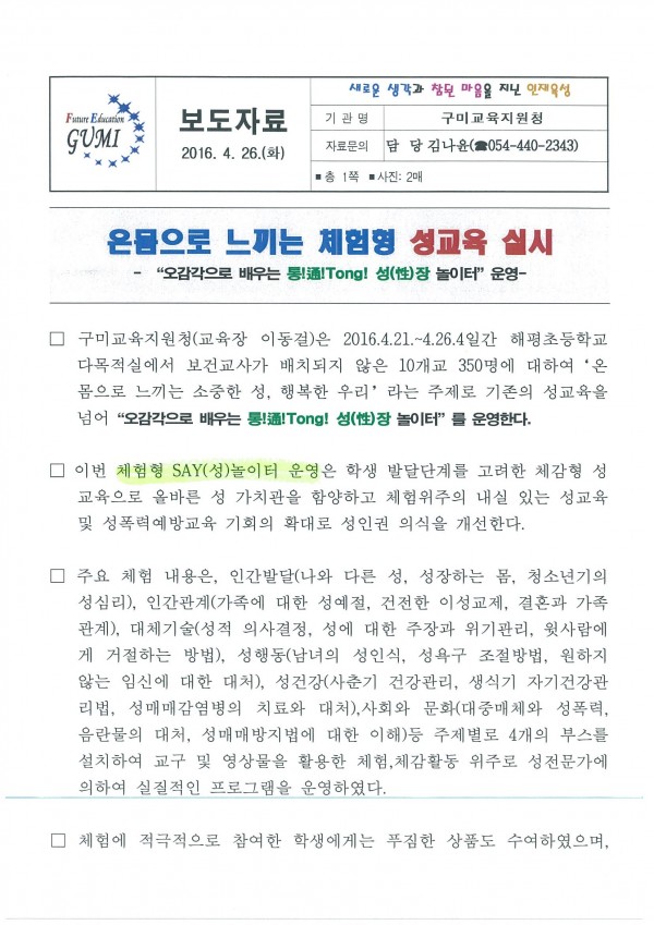 04.26 평생교육건강과-온몸으로 느끼는 체험형 성교육 실시-구미교육청보도자료